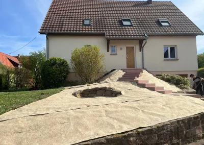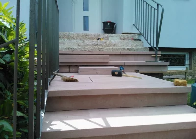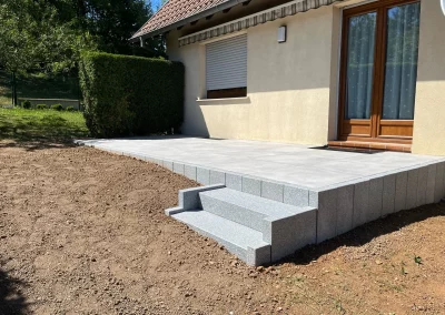 Notre équipe de paysagistes réalise la pose de dalles et de pavés pour créer des allées, des escaliers et des terrasses.