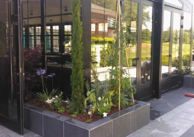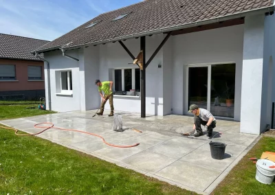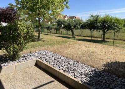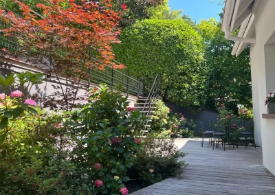 Nous travaillons avec différents matériaux tel que le bois, la pierre naturelle, le grès Céram ou le béton pour s’adapter au style de votre jardin.